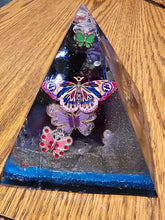 This handmade orgonite pyramid contains Black Tourmaline. Each of our pyramids also has a clear quartz crystal wrapped in metal in the tip. Orgonite is created through the process of mixing polyester resin, crystals, and metal. When the resin hardens it shrinks and puts pressure on the crystal. This pressure changes the polarity of the crystal creating a piezoelectric effect on surrounding dirty/chaotic EMFs, electro magnetic frequencies. This effect harmonizes negative EMFs, or DOR into positive EMFs, or POR. The field this piece creates is 10-14 feet. The base is about 4.25 inches