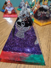This handmade orgonite pyramid contains Black Tourmaline. Each of our pyramids also has a clear quartz crystal wrapped in metal in the tip. Orgonite is created through the process of mixing polyester resin, crystals, and metal. When the resin hardens it shrinks and puts pressure on the crystal. This pressure changes the polarity of the crystal creating a piezoelectric effect on surrounding dirty/chaotic EMFs, electro magnetic frequencies. This effect harmonizes negative EMFs, or DOR into positive EMFs, or POR. The field this piece creates is 8-10 feet. The base is about 3.5 inches