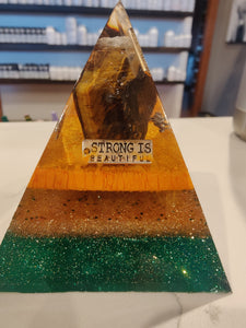 Medium Tiger Eye Orgonite EMF Protection/Chakra Healing Pyramid 10-14 Symm